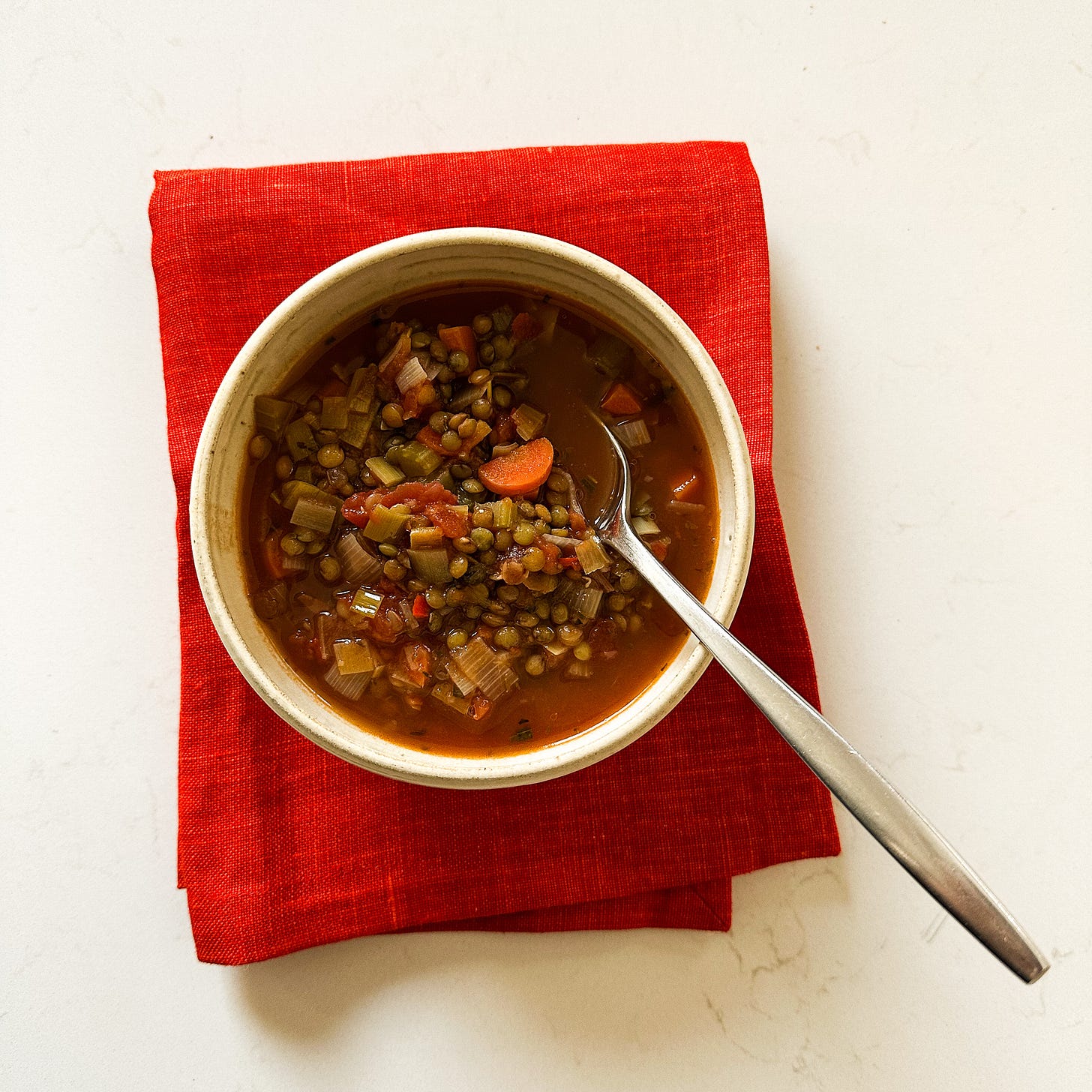 At the end of the afternoon there’s still more to uncover, but I have to get home. This much I know: our home was built in 1874, according to the street registry at the time, and was first owned by a Mr. William Duffus. His brother James lives next door. The granite foundation is still there as are the dormer windows, the banister, mantles, floorboards and woodwork carved like waves that lap along the trim of the stairs. Above the front door is a small number plate covered with layers of paint obscuring the original three-digit house number. The kitchen used to be the dining room. I keep my cookbooks on a shelf in the kitchen that was once a small doorway into the hallway. On the shelf is the hardback recipe journal, the gift from my mom when I was twenty-one. Inside that book is a recipe for my cousin Betsy’s lentil soup, scratched up with pencil marks from years of making this soup. There are notes like “sliced pancetta optional, added with the carrots and celery”, and “rub the oregano between your fingers to activate its flavours” or “finish the soup with a drizzle of good olive oil, if you have it”.